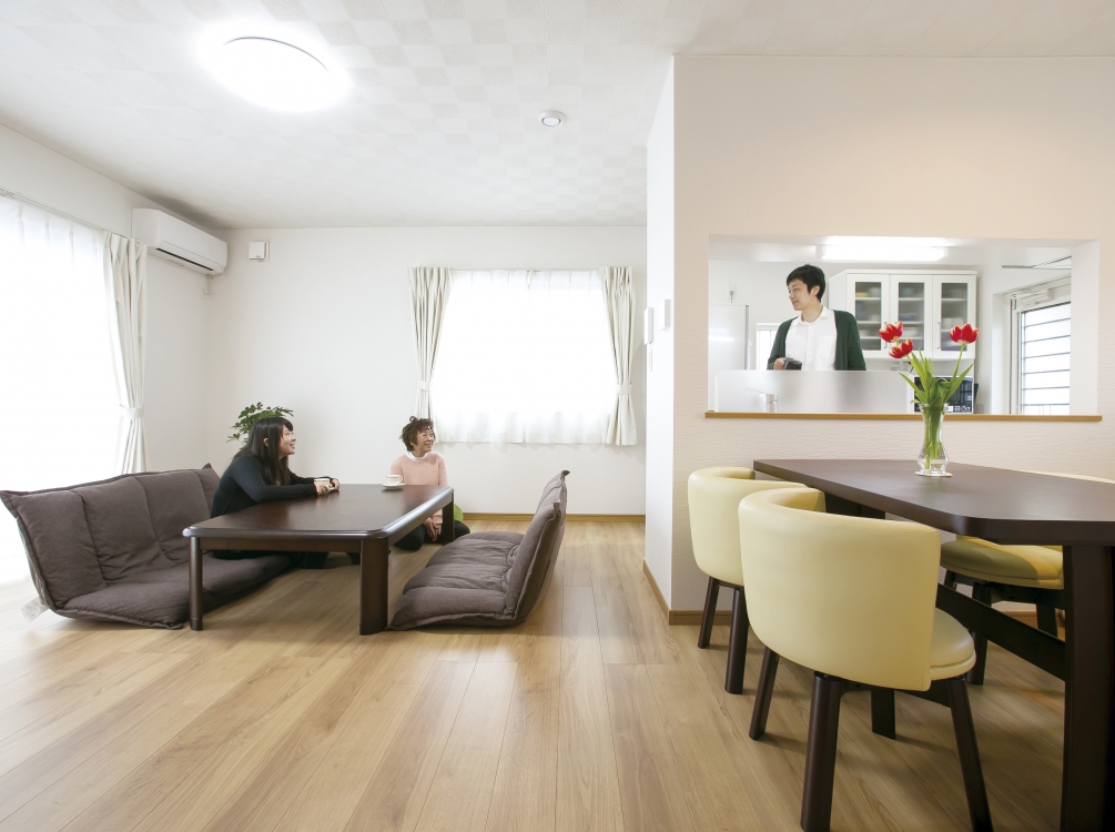 モデルハウスを見た時に、価格を見て「本当にこんな手頃な値段で建てられるの?」と驚きました。標準装備の充実度合と、営業担当の誠実な対応に惹かれてパパまるに決めて下さったとのこと。「家全体を基礎から包んでいる断熱材のアクアフォームのおかげか、冬はとてもあたたかく過ごせました。エアコンはほとんど使っていません。夏の快適さは、モデルハウスで体感しているので安心しています。」と話して下さいました。