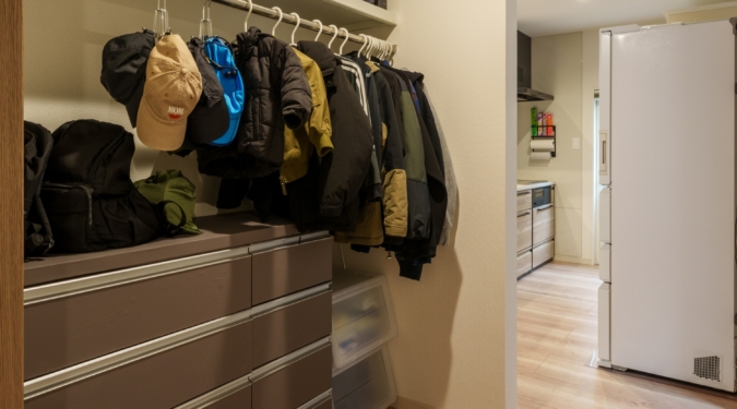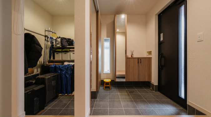 はぴママは、ゆとりのある広さのシューズインクロークも特徴。「広々としていて使いやすいので、タイヤやアウトドア用品などついつい何でも収納しちゃいます」と、旦那様が笑顔で話してくださいました。