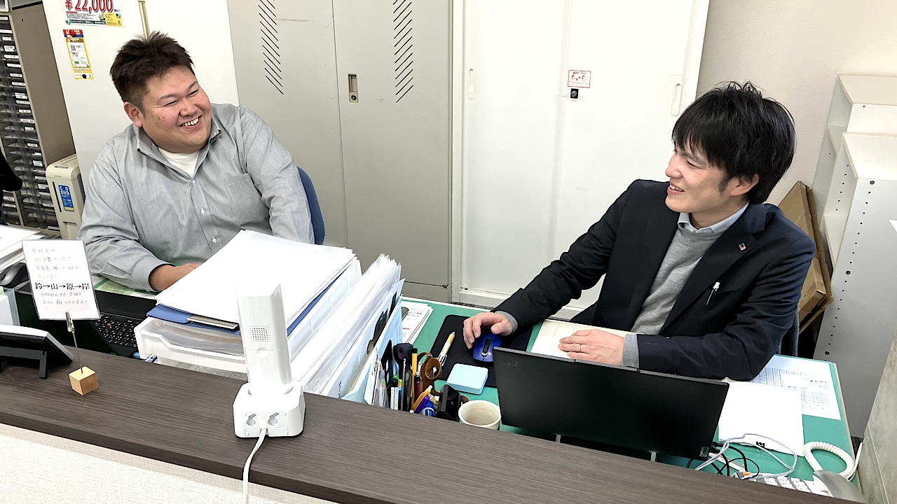 インタビューに答えてくれたのは、【写真左】支店長の岸下 将(きしした まさる)さん、【写真右】営業の鈴木 薫(すずき かおる)さん。