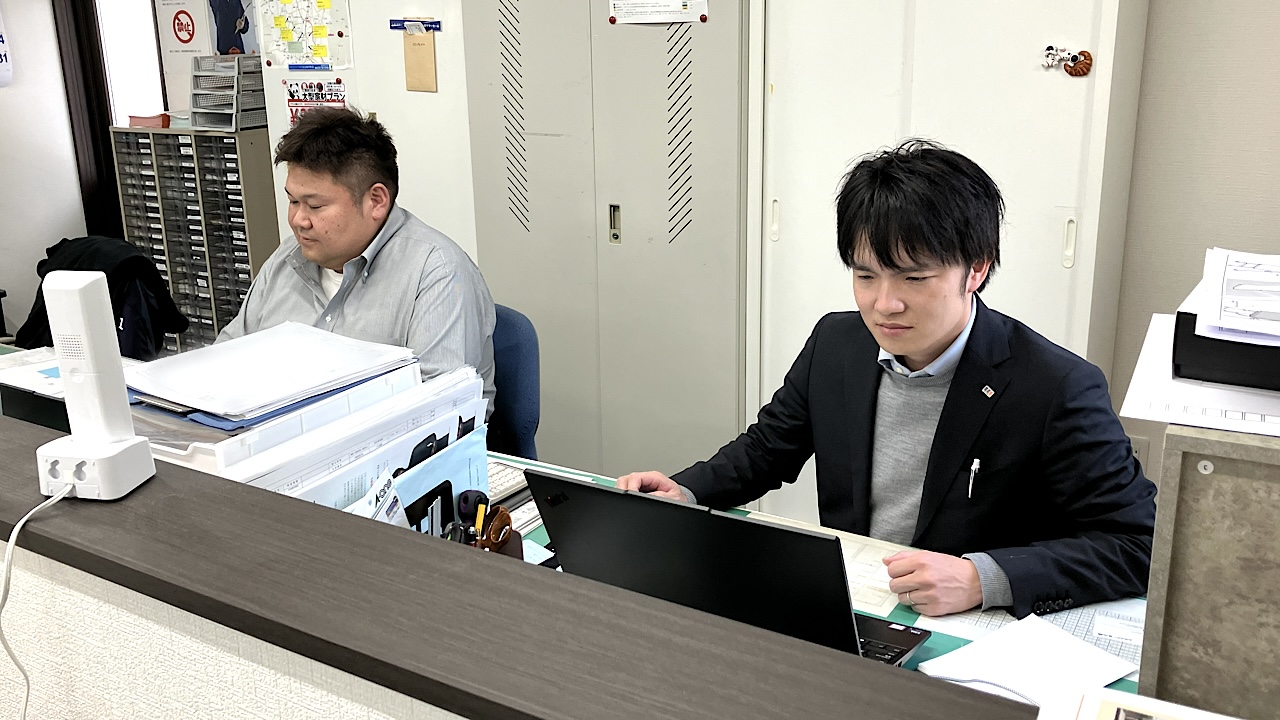 岸下:営業スタッフが私を含めて4人、現場監督が3人、事務スタッフが1人の、合計8人で仕事をしています。