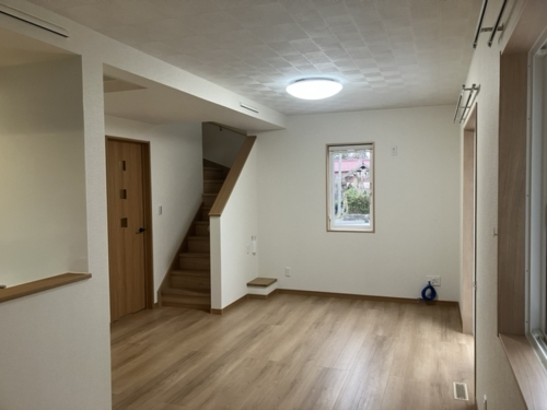 リビングには2階へと続く階段があり、家族の「おはよう」や「行ってきます!」など会話が自然と生まれるような設計となっております♪
