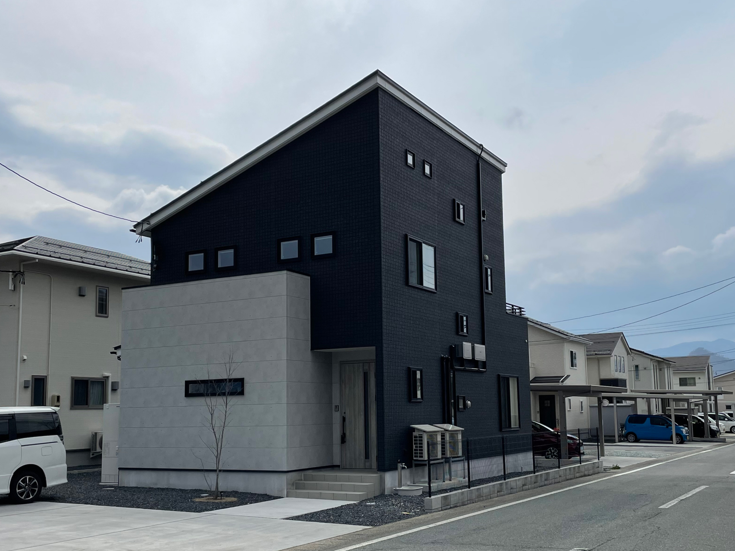 玄関周辺のコンクリート調の外壁がアクセントになっています!