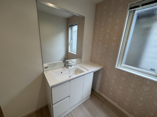 ご家族合計5人住まいで 2Fは4部屋 リビングは広く採用 人気のパウダールームも作成しました
