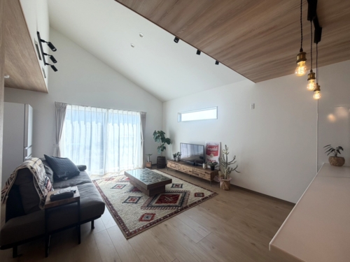 ・勾配天井で空間が広々としたLDK